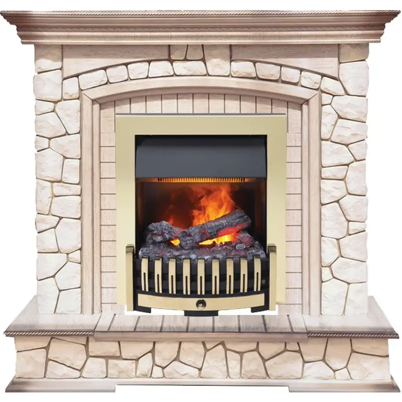 Каминокомплект Dimplex Preston - Белый/Слоновая кость с патиной с очагом Danville Brass FB2