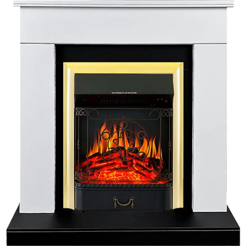 Каминокомплект Royal Flame Bergen (Разборный) - Белый с черным (Ширина 900 мм) с очагом Majestic FX Brass