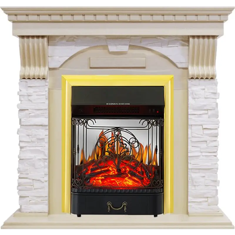 Каминокомплект Royal Flame Dublin - Слоновая кость с патиной / Сланец крем с очагом Majestic FX M Brass