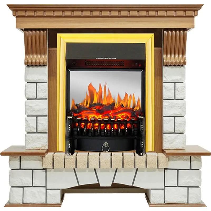Каминокомплект Royal Flame Pierre Luxe - Дуб / Белый с очагом Fobos FX M Brass