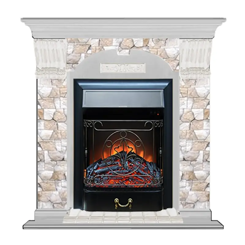 Каминокомплект Glenrich АРОЧНЫЙ АРБАТ бел. дуб c топкой MAJESTIC BL