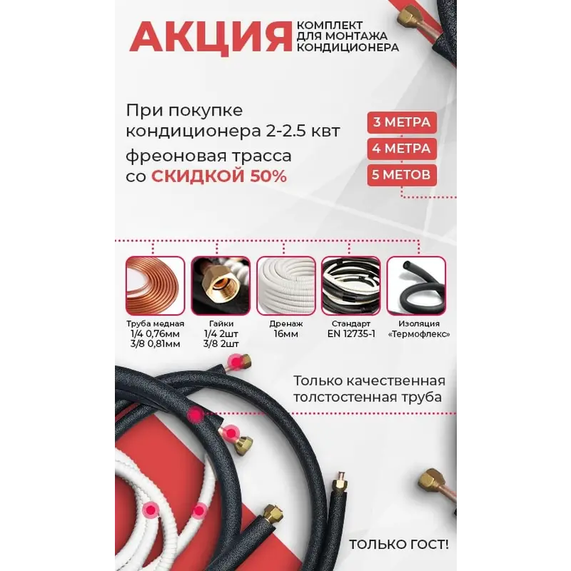 Комплект для монтажа кондиционера / Фреоновая трасса для монтажа со скидкой 50%, 3 метра