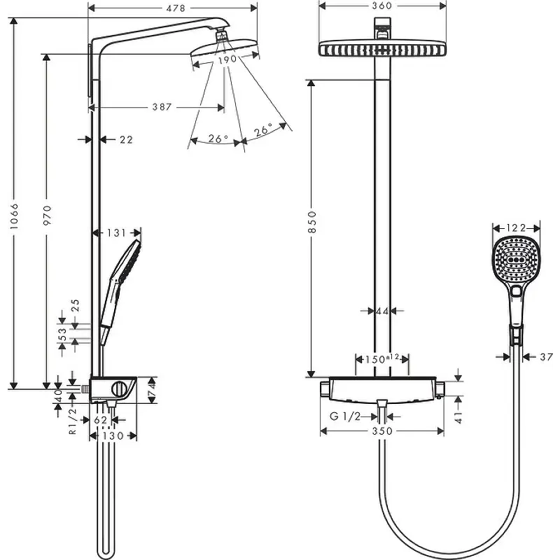 Душевая стойка Hansgrohe Raindance Select E белый/хром (27113400)