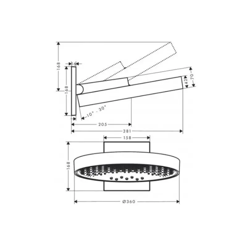 Размер верхнего душа, см:36