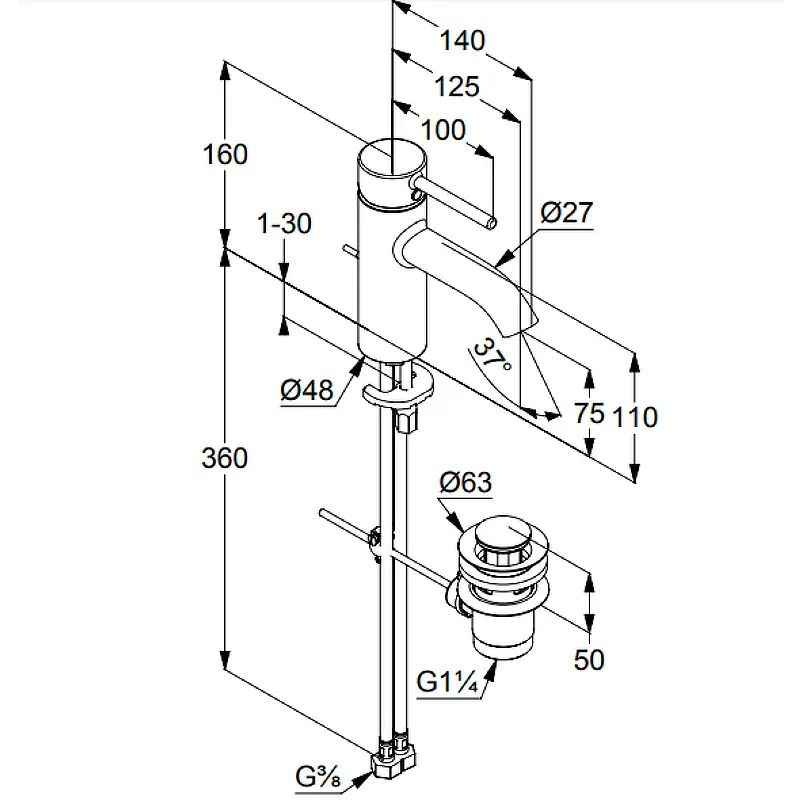 Стандарт подводки:3/8